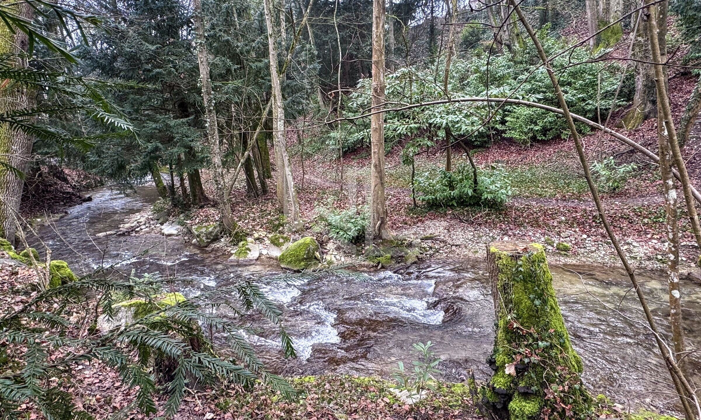 La situation est exceptionnelle avec une vue bucolique sur la forêt et une rivière, le tout proche du centre.